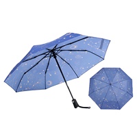 Paraguas de lluvia portátil automático de tres pliegues Galaxy para adultos Diseño de moda para todas las estaciones Estrellas 190T Pongee Kmart completamente automático