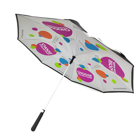 Paraguas recto de grado comercial con impresiones de logotipo personalizado de doble capa invertida automática inversa de dentro hacia fuera tamaño estándar